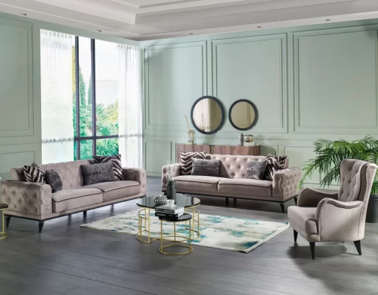 Yeni nesil tasarımlarla zenginleştirilen Alfemo Koltuk Takımı, salonunuza klasikliği taşıyor. Evinizin her köşesinde iddialı tarzınızı yansıtıyor. Üçlü koltuk, ikili koltuk ve şık bir berjerden oluşan takım zarif hatlarıyla beğeni topluyor.