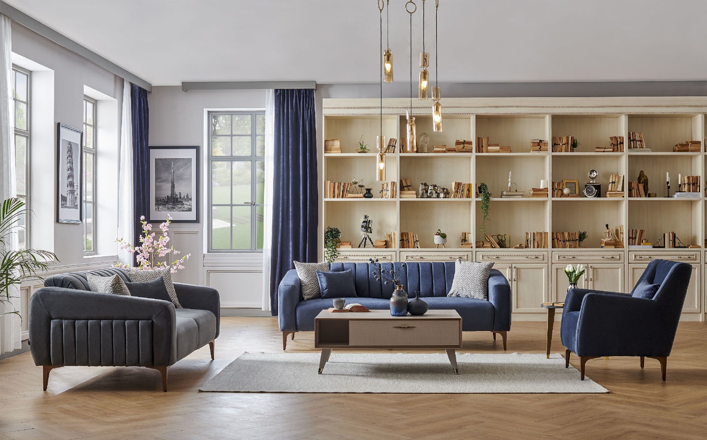 Yeni nesil tasarımlarla zenginleştirilen Alfemo Koltuk Takımı, salonunuza klasikliği taşıyor. Modern formları zarif tasarım çizgileriyle buluşturan Villa koltuk takımı, rahatlığı ön plana alan modern tasarım özelliklerinin buluştuğu Villa koltuk takımı, yüksek konfor ve estetiği bir araya getiriyor. Berjer, ikili koltuk ve kanepeden oluşmaktadır.