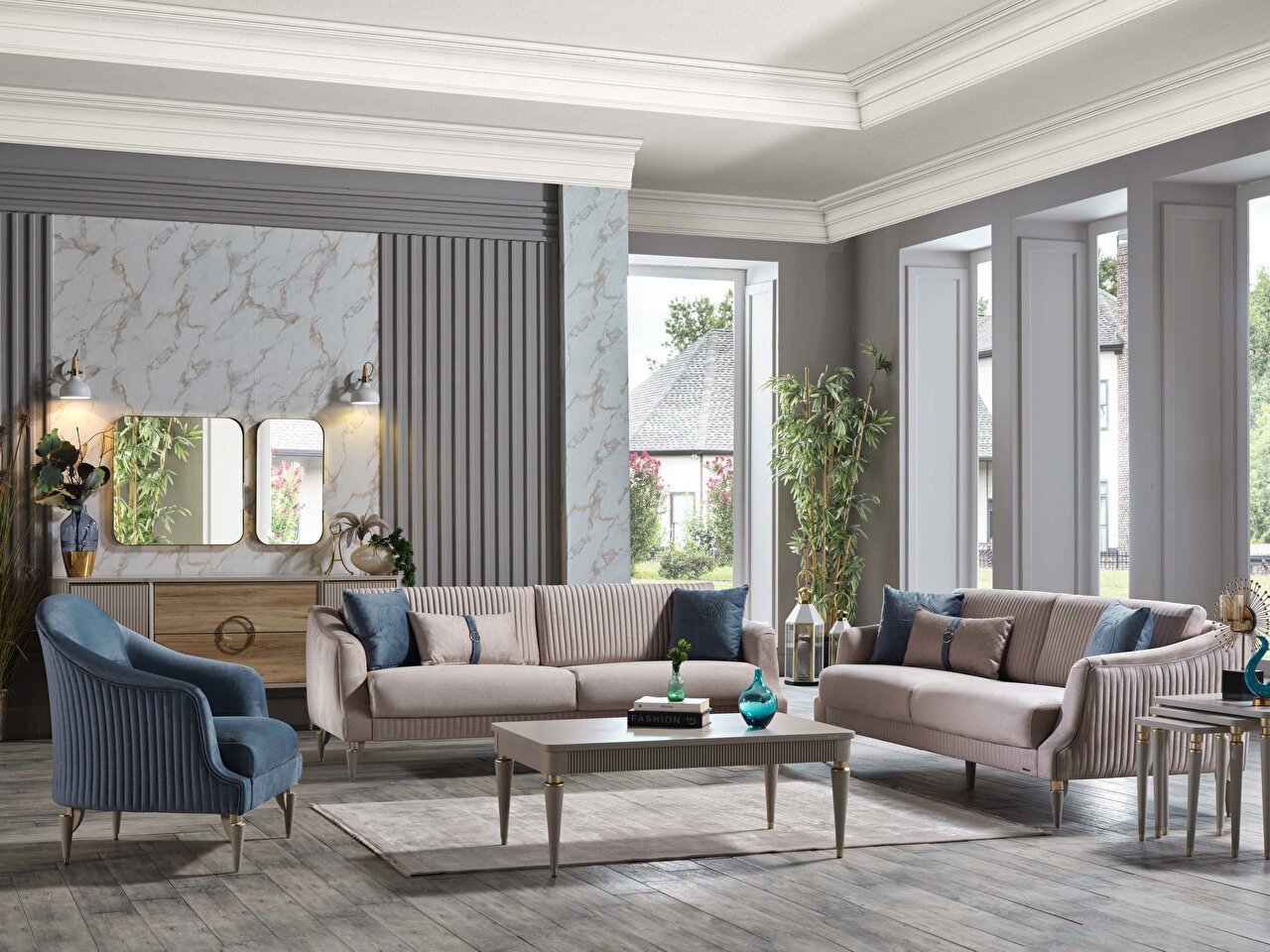 Modern koltuk takımı olarak bu model satışa sunulmuş. 24 ay garanti süresiyle güvence altına alınmış. İkili koltuklar gayet şık duruyor, ayakları özellikle çok dekoratif durmakta. Koltuk takımının minderleri oldukça rahat görünüyor. Özellikle rahatına düşkünler için güzel bir seçenek olabilir.