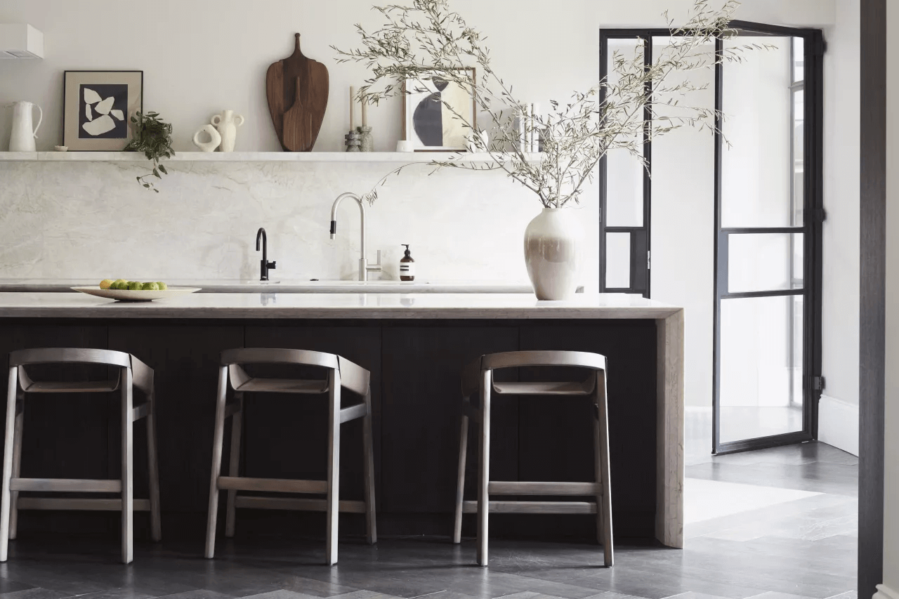 ‘Bazı alanlarda, evin yüksek tavanlarından ve orijinal mimarisinden ilham alan kesinlikle resmi bir doğa var, ancak müşteriler çok çekici veya gösterişli görünmesini önlemek istedi. Dengeleme eylemi çok önemliydi” diyor Cherie.
