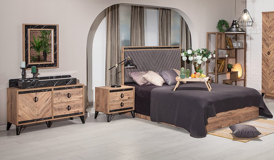 Genişleyen sırt bölgesi ile misafirlerimizi ağırlamak çok kolay. Yine geniş kullanım alanına sahip yatak ve yemek odası takımı da evinize konforu ve şıklığı getirecek.