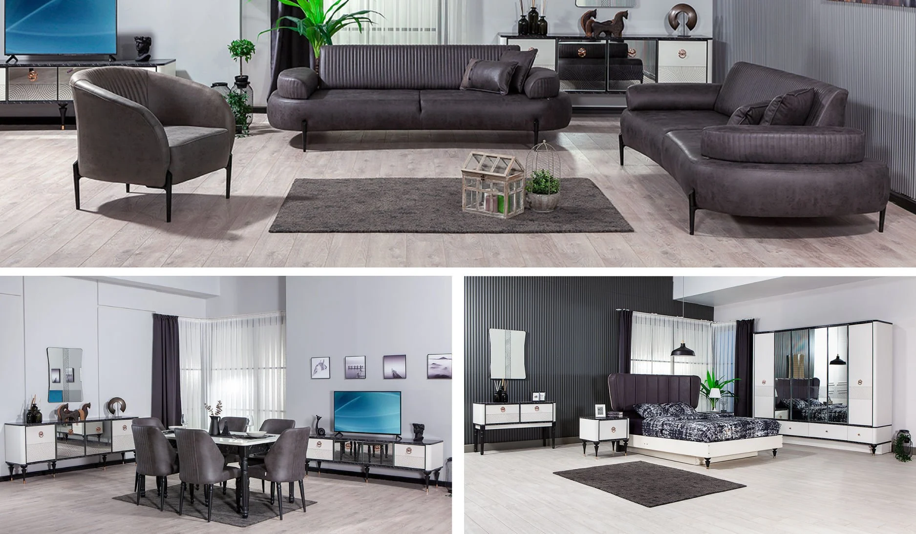 Rahatlık mottosundan yola çıkılarak tasarlanan Cross midi Koltuk takımının genişleyen sırt bölgesi ile film keyfinizi konforlu hale getiriyor. Yine minimal eşya kullanımını destekleyen koltuk takımımız yatak olma özelliğiyle misafirlerinizi nerede ağırlayacağız sorununu ortadan kaldırıyor. Cross yatak odası takımı da geniş gardırop ve diğer tamamlayıcı ürünleriyle bir yatak odasından beklentine cevap veriyor. Bununla birlikte kullanılan kaliteli malzeme sayesinde çizilme gibi sorunlar ile sizi yormayacak. Cross düğün paketindeki ürünlerin yüksek ayak özelliği ve kolay temizlenebilir kumaşları ile temizlik yapmak keyifli hale geliyor.