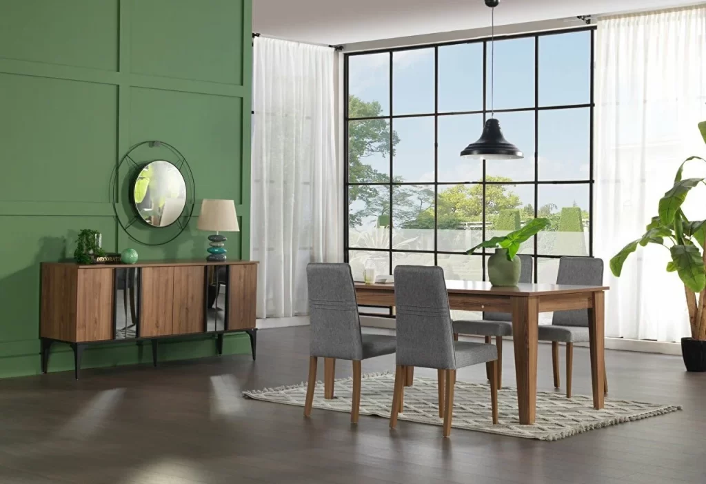 Mondi Home Still Yemek Odası Takımı, klasik tasarımı ve özelleştirilebilir özellikleriyle evinizin en şık köşesi olmaya aday. Gri tonlarının yer aldığı yumuşak dokulu sandalyeleri ile dikkat çekiyor. İki seçenek mevcuttur. Misafirlerinizi etkileyecek ve evinizin havasını değiştirecek bir takım arıyorsanız, bu ürün tam size göre.