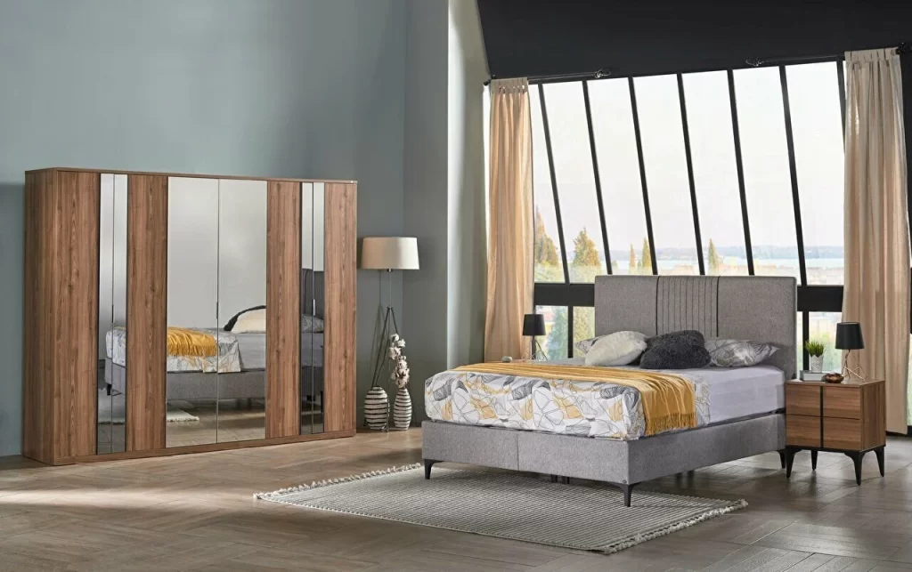 Zarif ve şık tasarımıyla dikkat çeken bu yatak odası takımı, her detayıyla göz kamaştırır. Ayrıca rahat bir uyku deneyimi sunan büyük bir yatak ve bu takım, odanızda düzeni sağlamak için bol miktarda depolama alanları sunar. Gardırop hem fonksiyonel hem şık bir parça.