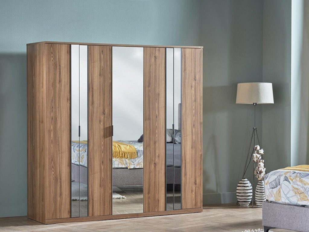 Takım içeriğinde beş kapaklı gardırop bulmaktadır. Takıma ekstra gardırop eklemek isterseniz sürgülü ve altı kapaklı gardırobumuz da mevcuttur. Mondi Home Still yatak odası takımında yer alan gardırop, rafları ve askılıkları ile kıyafetler ve diğer tekstil ürünleri için geniş saklama alanları ile sizlere kolaylık sağlıyor. Ayrıca boy aynası odayı daha ferah gösteriyor.