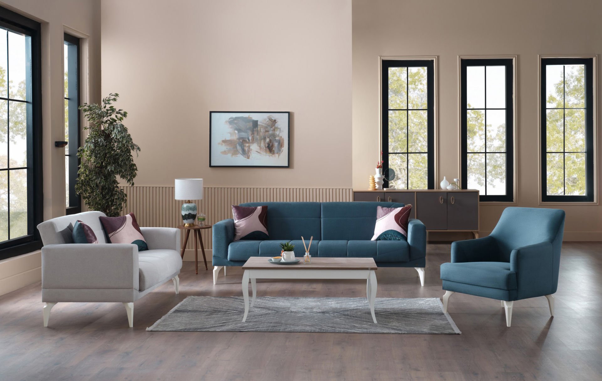 Koltuk ayaklarında yüksek olması ve kullanılan beyaz detaylar, salonunuzu oldukça şık ve zarif bir görünüm oluşturuyor.