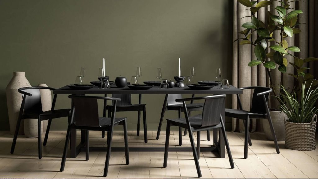 Yemek odanızda doğal bir atmosfer yaratmak için Cİ-7365 rengi ideal bir seçim. Bu renk, orman yeşilinin derin ve zengin bir tonu ile mekanlara zarafet ve huzur verir. Yemek odanızda bu rengi duvarlarda veya mobilyalarda kullanabilir, siyah aksesuarlar ile de şık bir kontrast oluşturabilirsiniz. Siyah, Cİ-7365 renginin gücünü ve asaletini ortaya çıkarır. Yemek takımınız, avizeniz, tablolarınız veya diğer dekoratif eşyalarınız siyah renkte ise, yemek odanızda muhteşem bir uyum yakalarsınız. Yemek davetlerinizde misafirlerinizi etkilemek için Cİ-7365 ve siyahın mükemmel uyumundan yararlanabilirsiniz.
